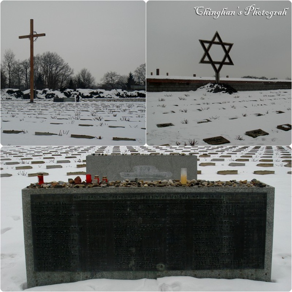 與猶太標誌相對的是一個大十字架,猶太人掃墓的方式就是將石頭放在墓碑上。剛好遇到一位猶太人被兩位朋友攙扶著紅著眼眶走過去,心中也浮起一陣陣的悲傷。